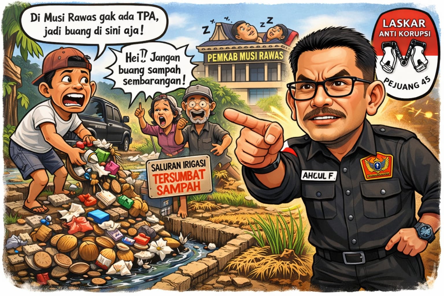 MUSIRAWAS EKSPRES.COM, Musi Rawas – Laskar Anti Korupsi Pejuang 45 (LAKI P 45) melalui Ahlul Fajri kembali melontarkan sorotan keras terhadap program dan kinerja Pemerintah Kabupaten Musi Rawas yang dinilai abaikan terhadap persoalan kebersihan lingkungan, khususnya terkait pengelolaan sampah dan ketersediaan Tempat Pembuangan Akhir (TPA).