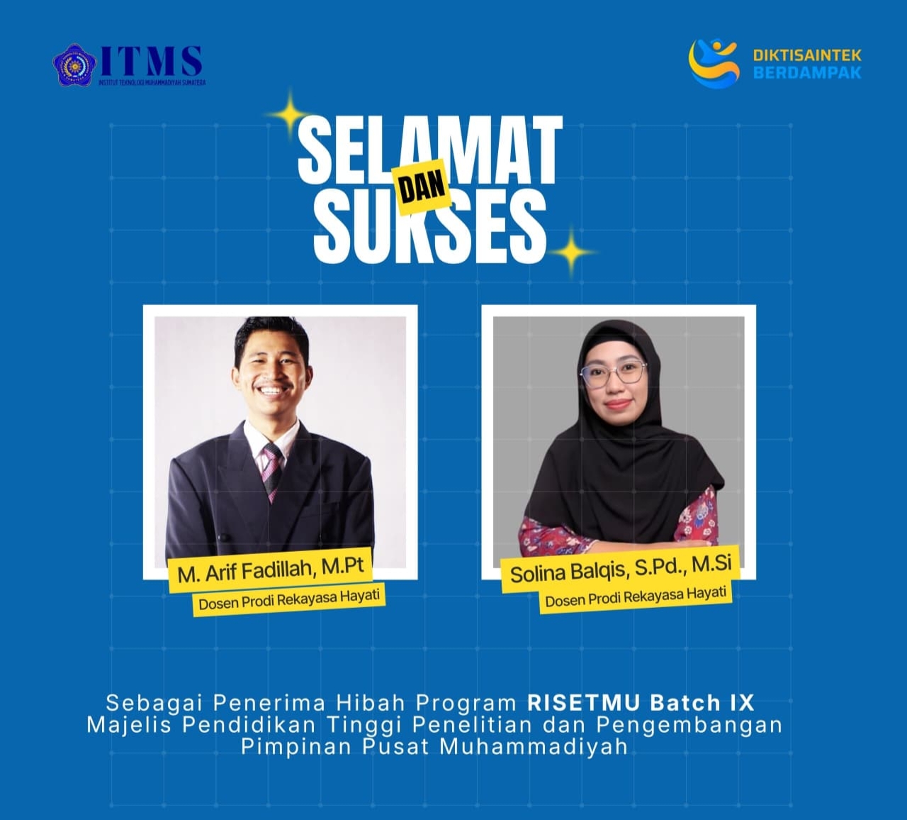 Hibah RISetmu merupakan program pendanaan penelitian bergengsi yang bertujuan untuk mendorong peningkatan kualitas riset dan publikasi ilmiah di lingkungan Perguruan Tinggi Muhammadiyah dan ‘Aisyiyah (PTMA) di seluruh Indonesia. Keberhasilan kedua dosen ini menunjukkan kualitas dan relevansi penelitian yang dikembangkan di ITMS, khususnya dalam bidang Rekayasa Hayati.