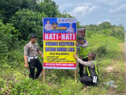 MUSIRAWAS EKSPRES.COM, Musi Rawas -Satlantas Polres Musi Rawas, melakukan pemasangan Spanduk Himbauan Daerah Rawan Lakalantas di Jalan Lintas Kabupaten Musi Rawas-Pali, tepatnya di Desa Tambangan, Kecamatan BTS Ulu, Kabupaten Musi Rawas, Rabu (17/12/2025).