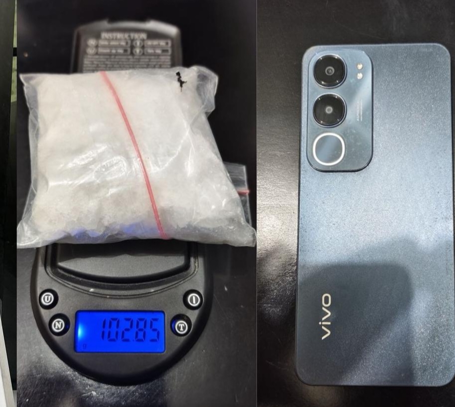 Petugas kemudian menyisir area pelarian tersangka dan menemukan bungkusan yang sempat dibuang tidak jauh dari lokasi penangkapan. Saat dibuka, bungkusan tersebut berisi satu paket plastik klip bening dengan kristal putih diduga narkotika jenis sabu dengan berat bruto mencapai 102,85 gram. Selain itu, petugas juga menyita satu unit ponsel merk Vivo Y19 warna biru tua yang diduga digunakan untuk alat komunikasi transaksi.
